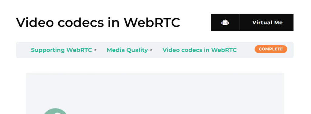 If you’re enrolled in the WebRTC Architecture or Supporting WebRTC courses, then you might have noticed a new button near the title of the lessons, saying “Virtual Me”:
